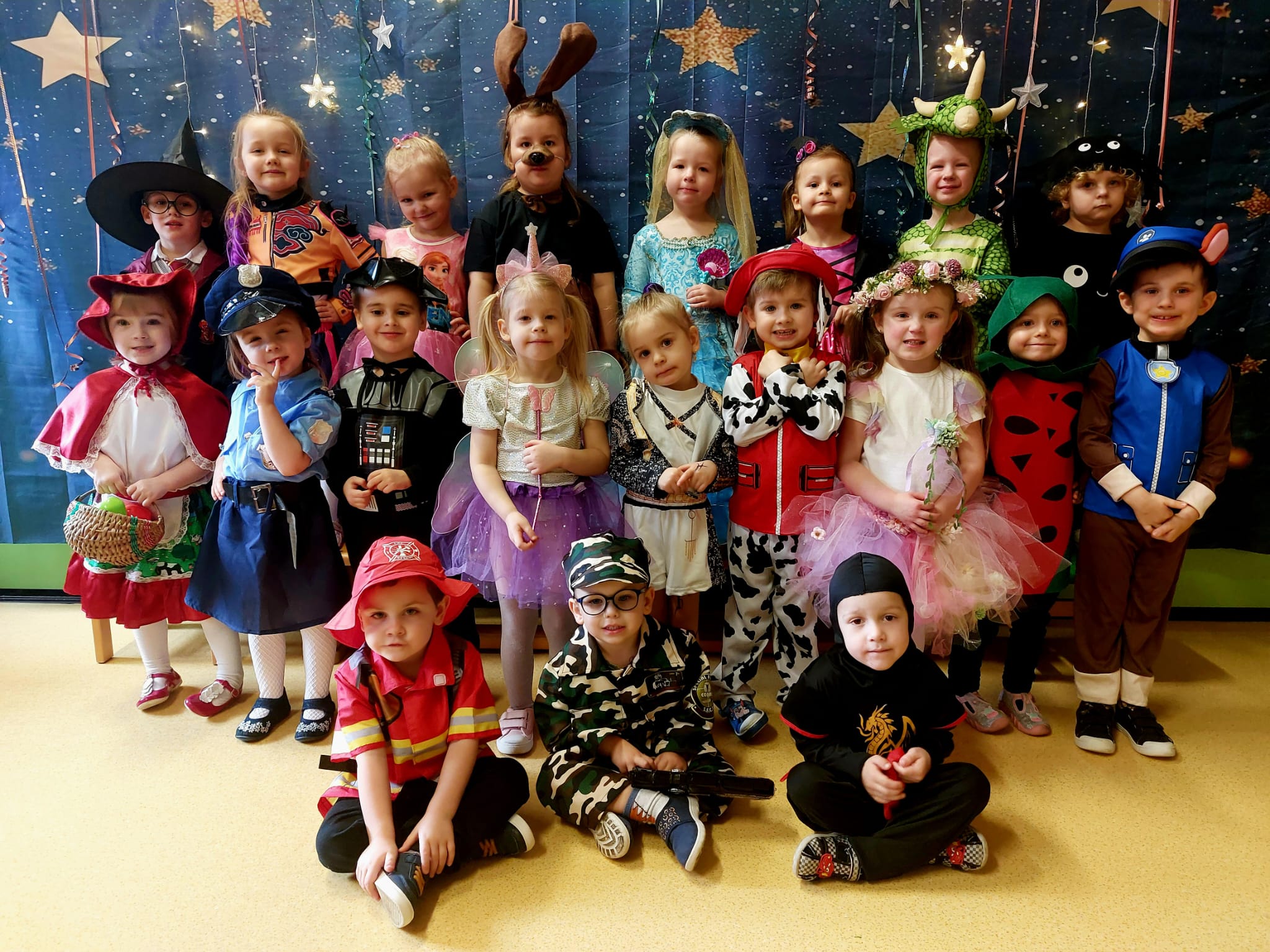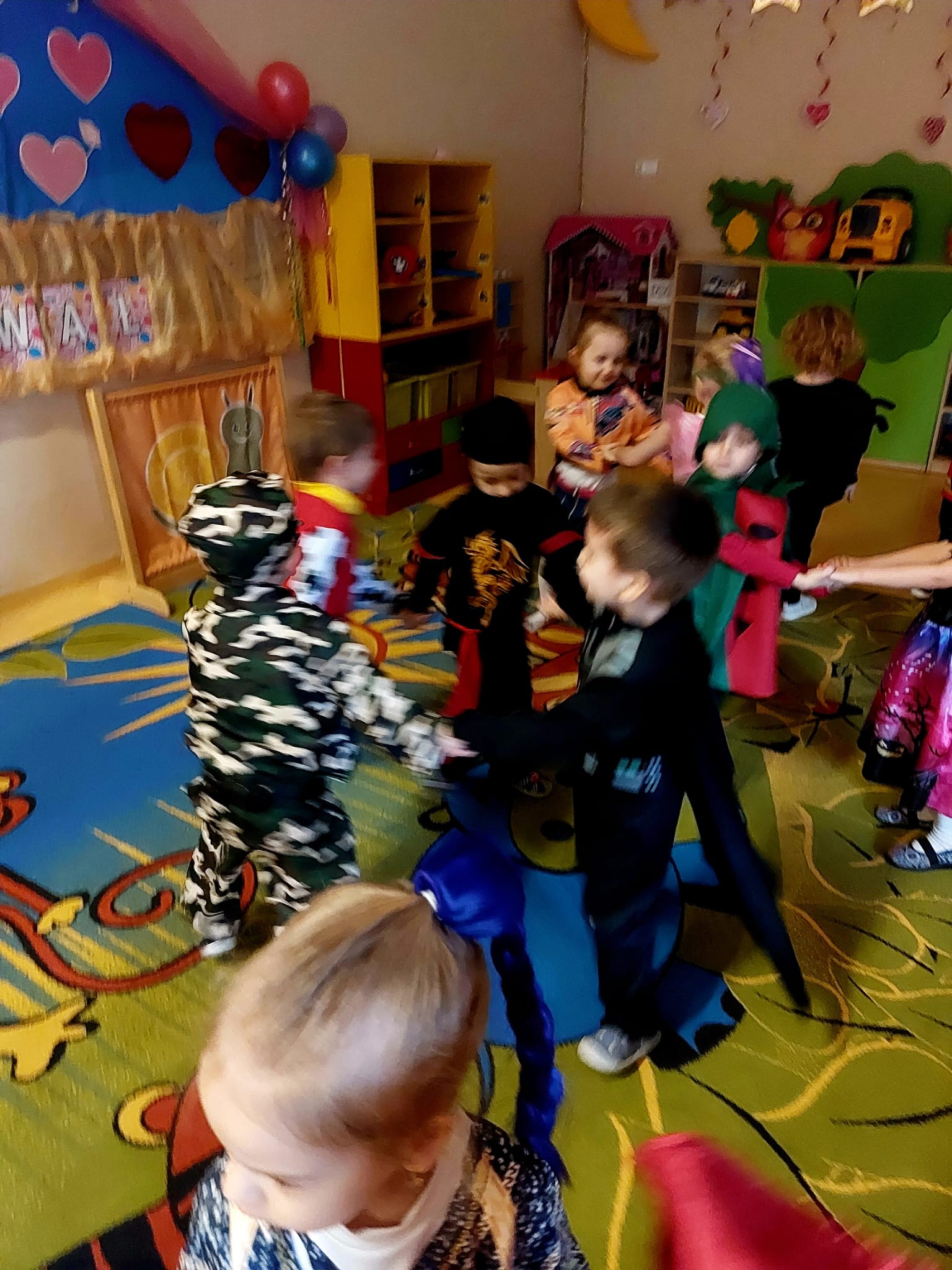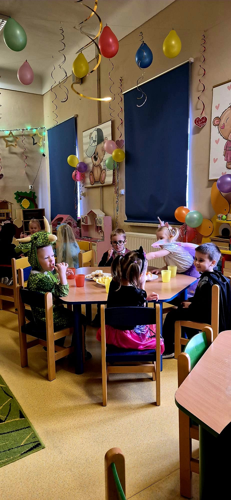 Karnawał to czas pełen radości i zabaw, a jego najbardziej oczekiwanym wydarzeniem jest Balik Karnawałowy. W dniu przedszkolnego Balu nasza sala zamieniła się w salę pełną kolorowych serpentyn i balonów. Dzieci przebrane za Postaci z ulubionych bajek i filmów doskonale bawiły się przy dźwiękach ulubionych przebojów. Były tańce i zabawy, słodki poczęstunek i pamiątkowa sesja zdjęciowa.