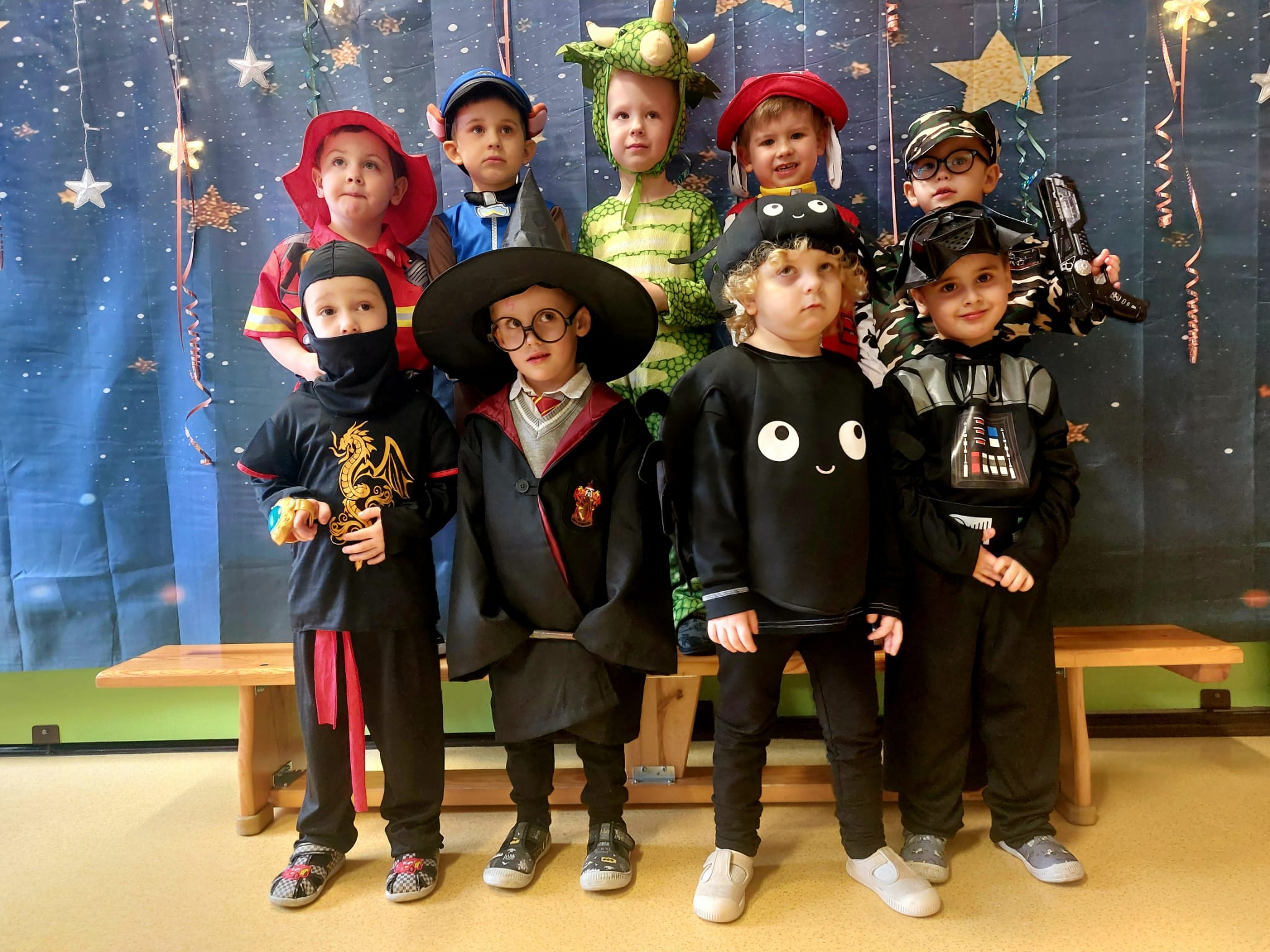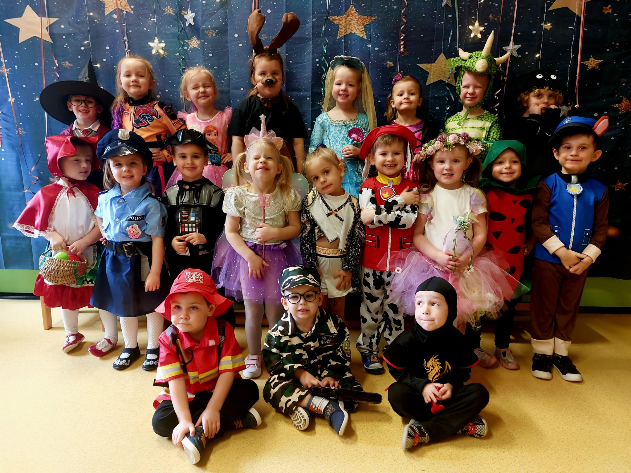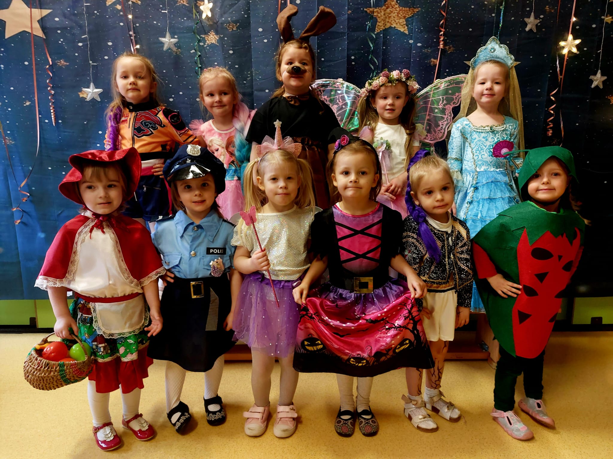 Karnawał to czas pełen radości i zabaw, a jego najbardziej oczekiwanym wydarzeniem jest Balik Karnawałowy. W dniu przedszkolnego Balu nasza sala zamieniła się w salę pełną kolorowych serpentyn i balonów. Dzieci przebrane za Postaci z ulubionych bajek i filmów doskonale bawiły się przy dźwiękach ulubionych przebojów. Były tańce i zabawy, słodki poczęstunek i pamiątkowa sesja zdjęciowa.
