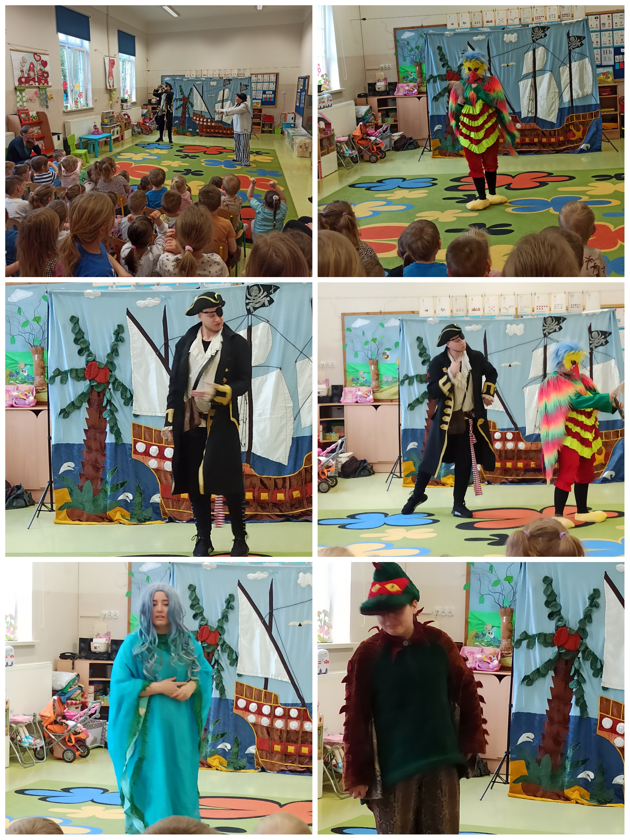 Dzieci z naszego przedszkola miały okazję przenieść się w świat pirackich przygód, dzięki aktorom teatru Skrzat z Krakowa. Spektakl "Wyspa skarbów" zabrał wszystkich widzów w pełną emocji podróż, podczas której śledzili losy dzielnego pirata i jego towarzyszki - papugi. Barwne kostiumy, wesołe piosenki i mnóstwo humoru sprawiły, że widzowie chętnie śledzili akcję i włączali się w przedstawienie. To była wartościowa teatralna przygoda z odkryciem prawdziwych skarbów dla człowieka: SKARB PRZYJAŹNI, SKARB RADOŚCI, SKARB MIŁOŚCI.
