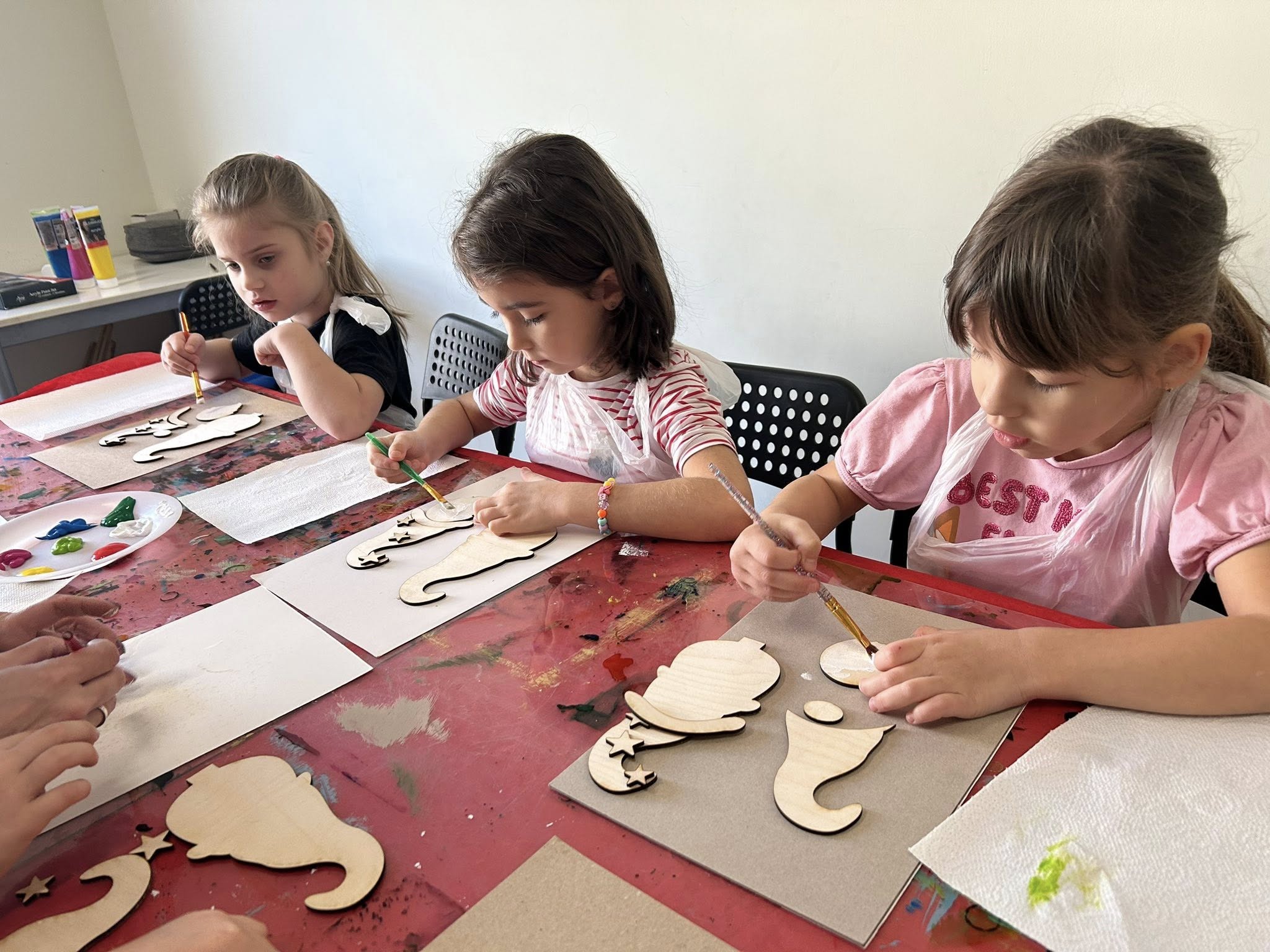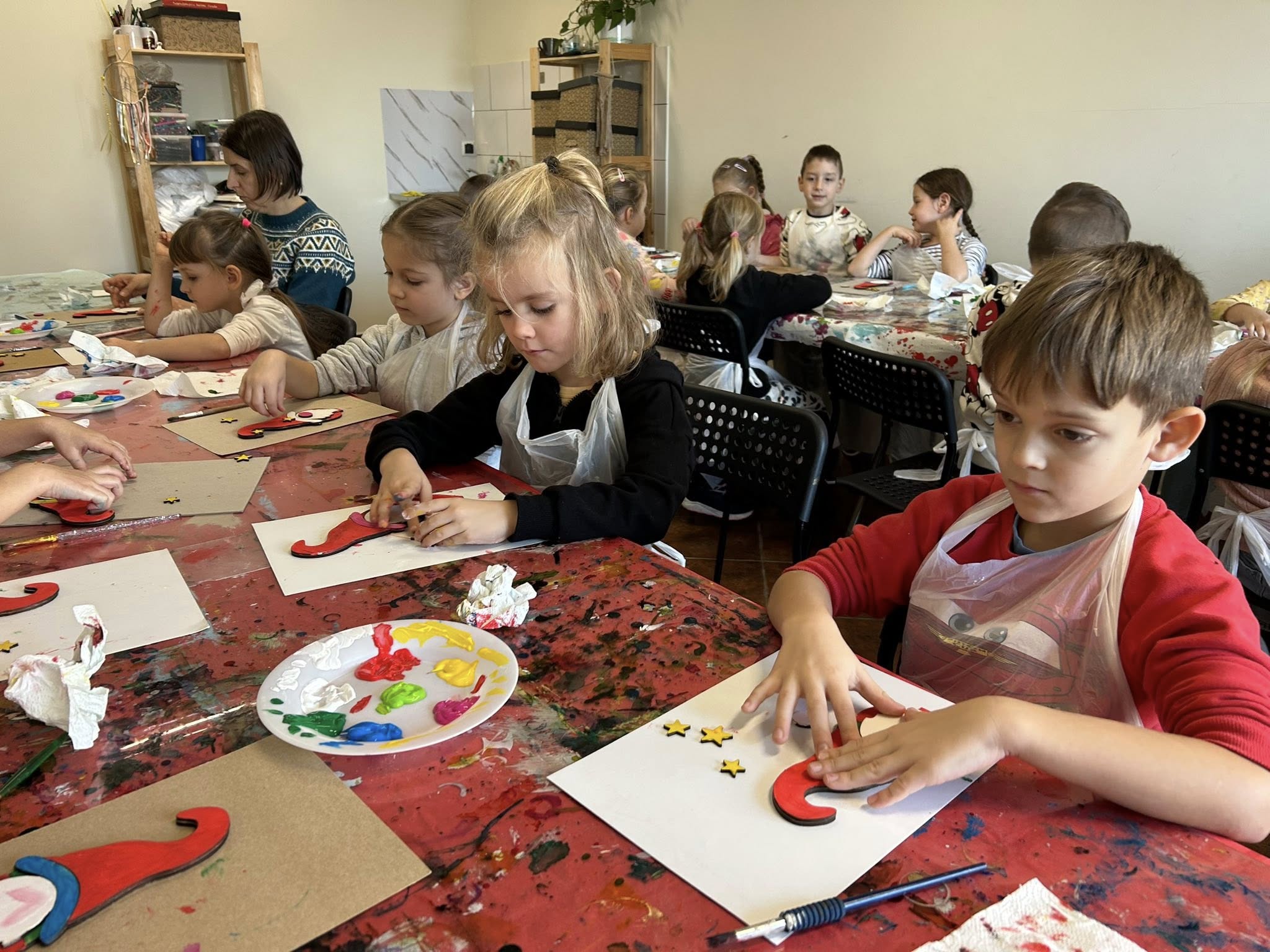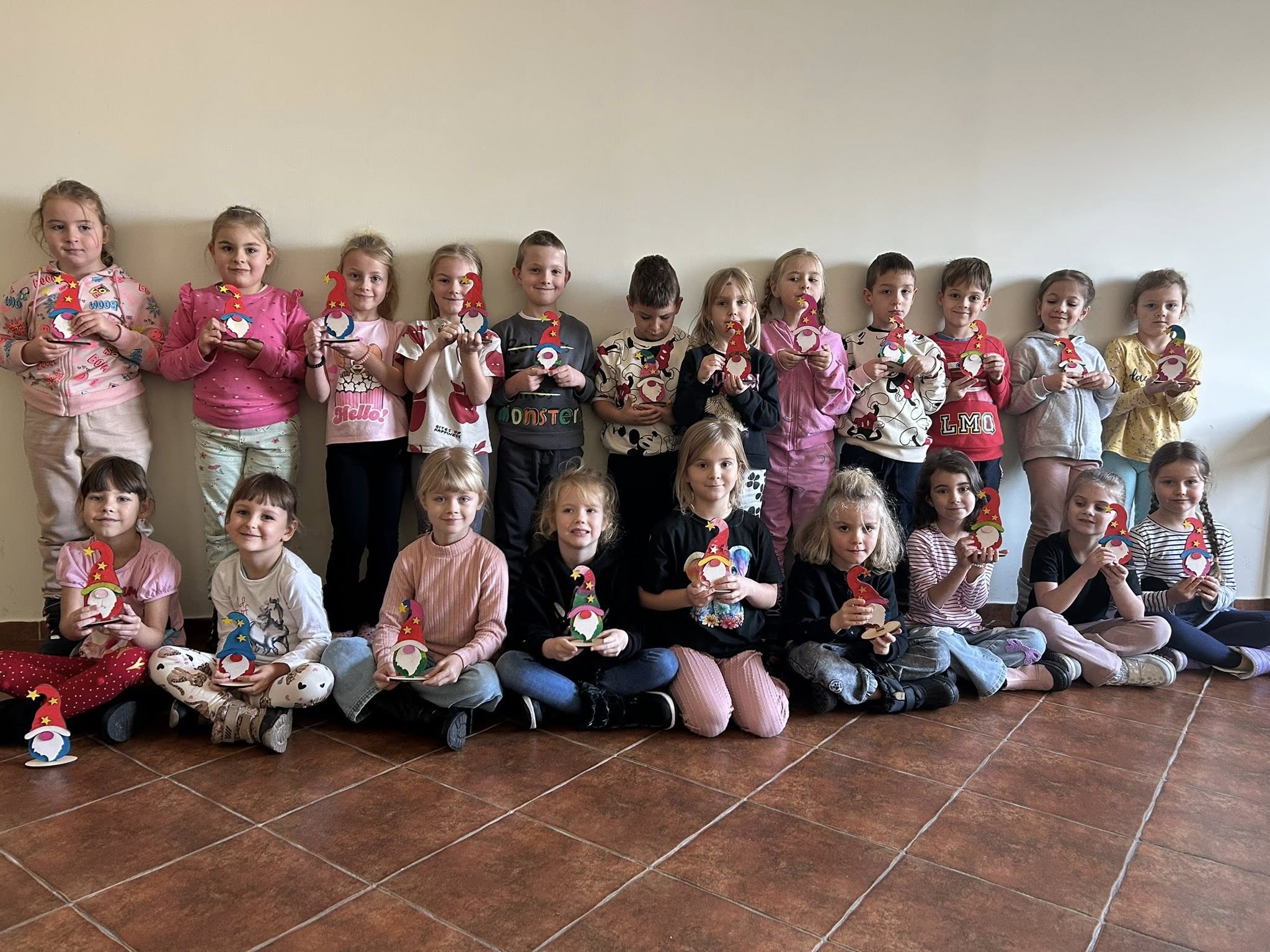 Dzieci z ogromnym zaangażowaniem tworzyły swoje własne drewniane gnomki – samodzielnie je malowały, ozdabiały i sklejały, wykazując się przy tym wielką kreatywnością i precyzją.