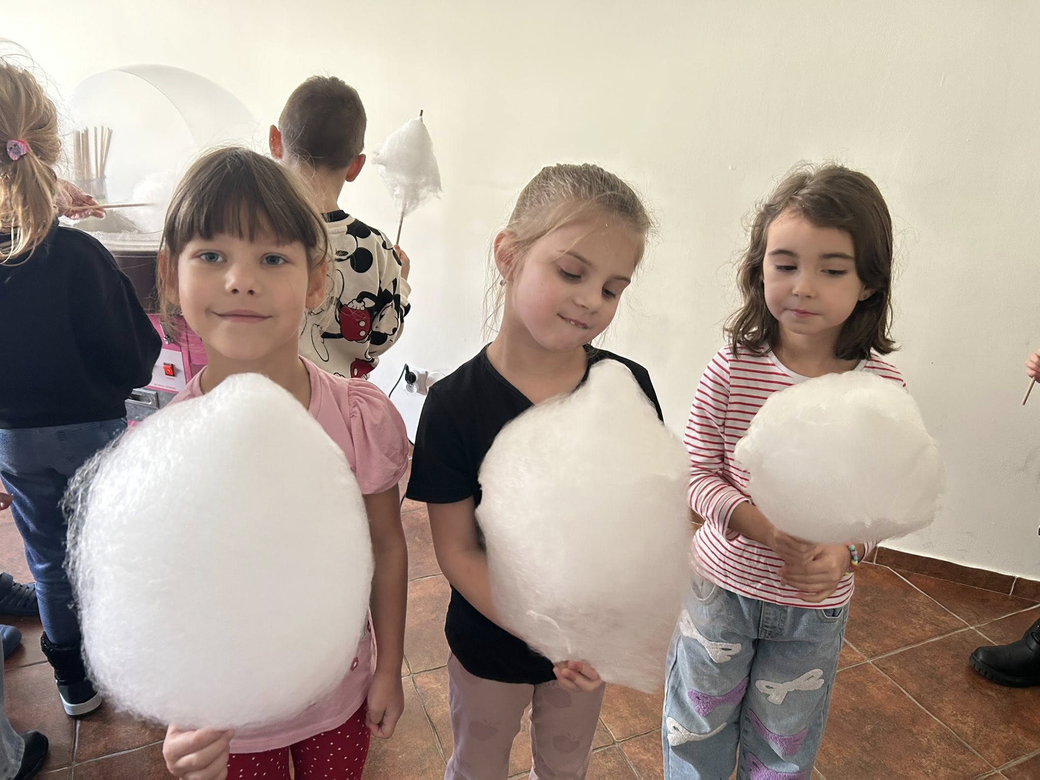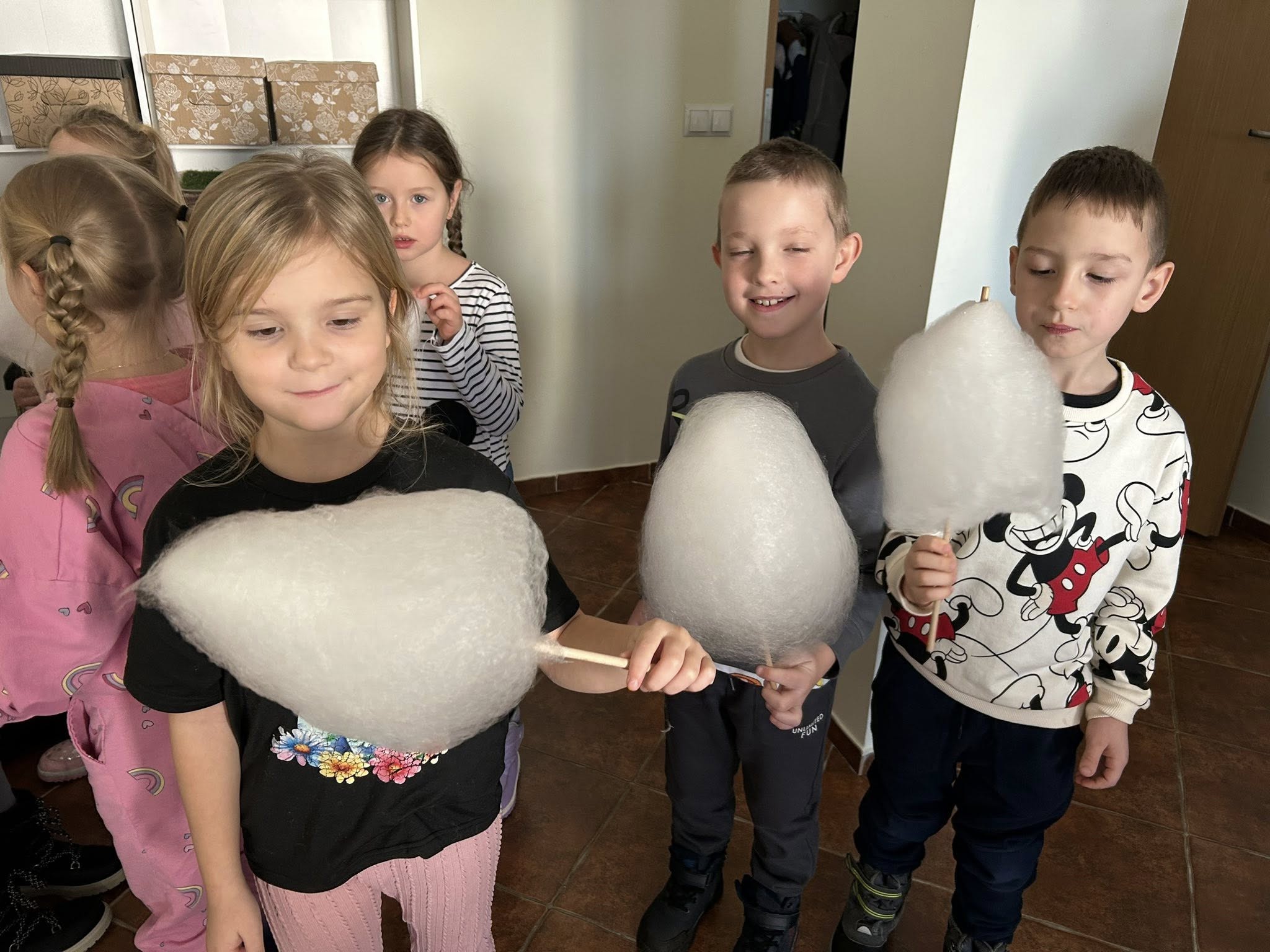 Po zakończonych zajęciach na małych twórców czekała słodka niespodzianka – wata cukrowa, która wywołała mnóstwo uśmiechów.